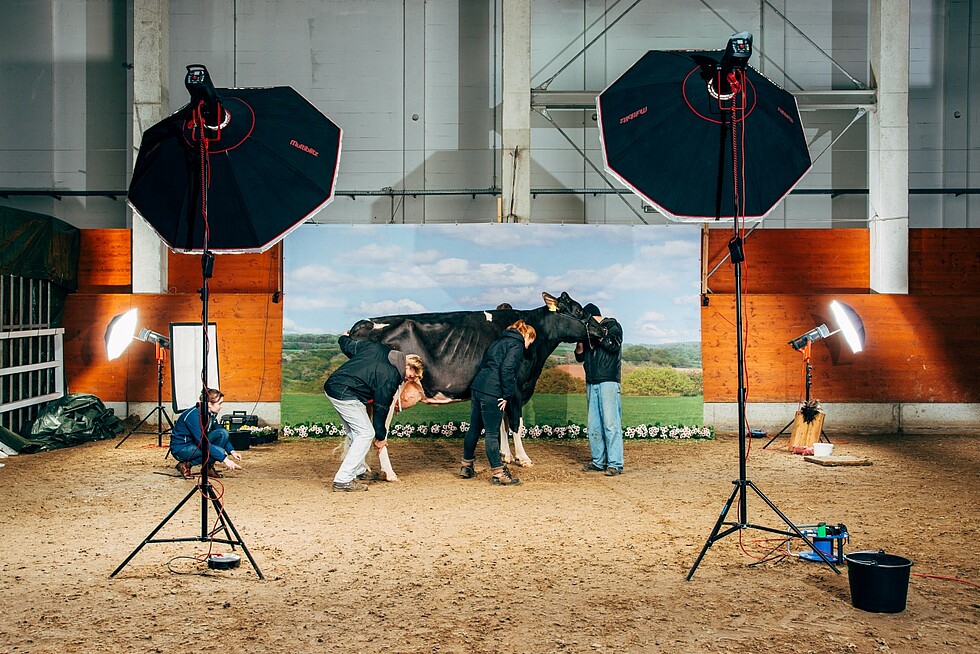 Dennoch ist die moderne Form der Milcherzeugung für die meisten Verbraucher:innen immer noch ferne Realität. Diese Ausstellung mit Fotos von Hochleistungskühen, Melktechnik, Stallanlagen und Auktionen ist insofern auch verdienstvoll, als sie viele einen Blick hinter die Kulissen wirftund einlädt, das eigene Konsumverhalten kritisch zu hinterfragen.