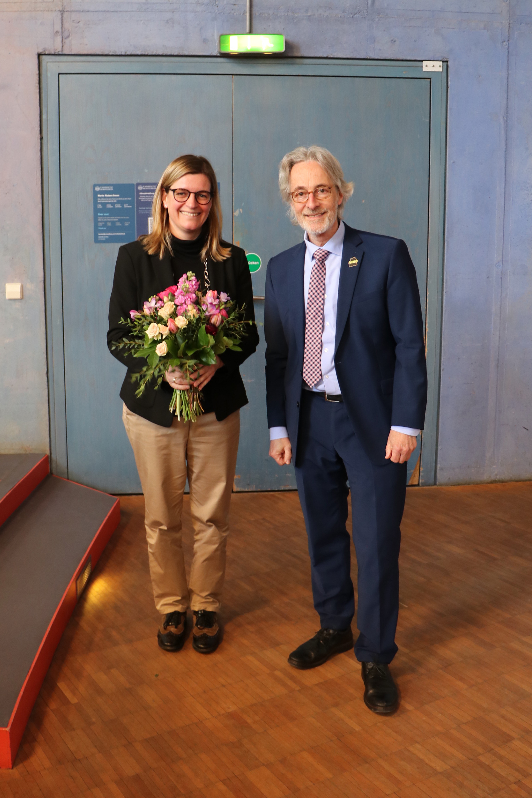 Blumen auch für Kanzlerin Dr. Katrin Scheffer anlässlich ihres 10jährigen Amtsjubiläum. Bild: Universität Hohenheim / Florian Klebs