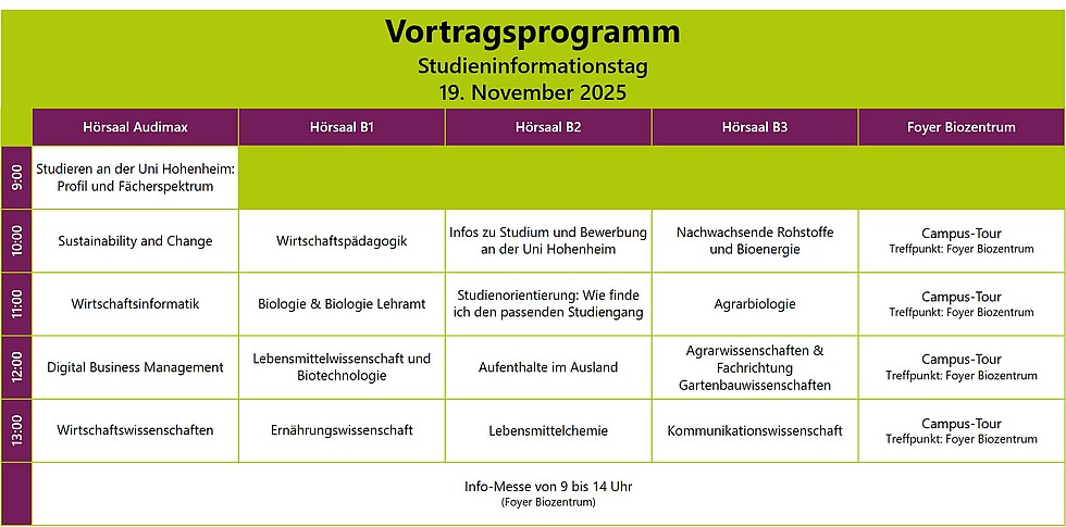 Im Rahmen des baden-württembergweiten Studieninformationstages erwartet Dich ein buntes Programm rund um das Thema „Studieren an der Universität Hohenheim“. Du erhältst alle wichtigen Informationen, die Du für die Studienwahl brauchst.