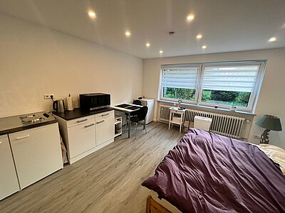 Zur Vermietung steht ein frisch renoviertes, möbliertes Zimmer mit eigenem Badezimmer sowie Zugang zum Balkon.