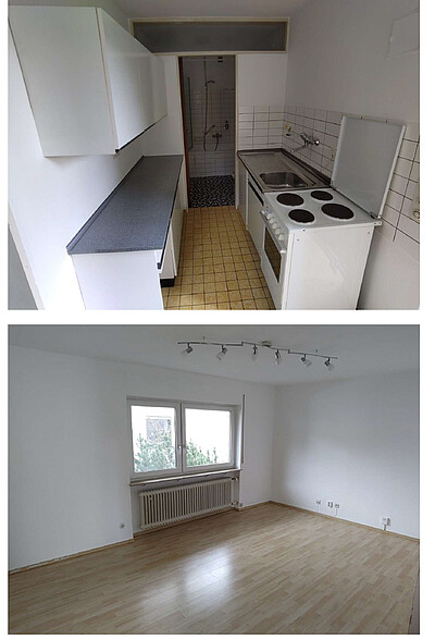 - 1-Zimmerwohnung (27 m2) mit Küche und Badezimmer (Badewanne mit integrierter Dusche)