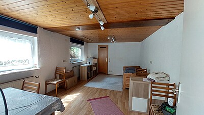 Die Wohnung besteht aus einem großen Wohnzimmer, Flur mit Küchenzeile, Dusche, WC und einem Abstellraum.