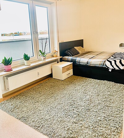 Das Zimmer ist durch die Fensterfronten schön hell und wird voll möbliert übergeben, sodass du deine eigenen vier Wände beliebig nach deinen Wünschen einrichten kannst. Das Zimmer hat auch direkt Zugang zu dem grosse Balkon.