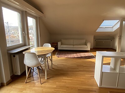 Helle, charmante und teilmöblierte Dachwohnung im Grünen mit Balkon, Einbauküche, Bad mit Waschmaschine ab 01.12.2025 befristet auf 1 Jahr zu vermieten.