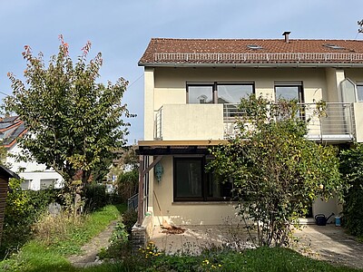Doppelhaushälfte mit 4 Schlafzimmern, Wohn- und Esszimmer, Bad mit Wanne, Dusche und WC, 2 Gäste-WC, Einbauküche mit Kühlschrank und Spülmaschine, Waschmaschine, Terrasse mit Garten.